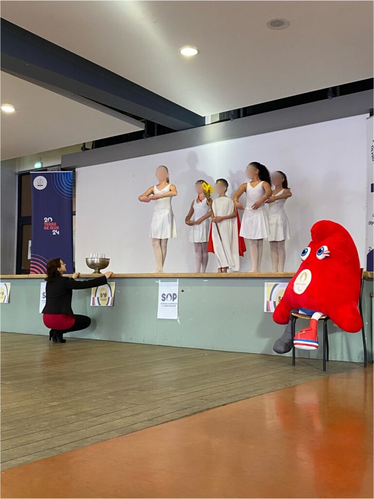 • Arrivée de la flamme grâce à une danse qui a permis d’allumer la vasque