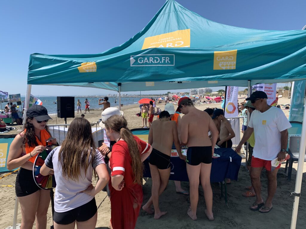 Les ateliers qui ont été proposés : • CSPG (Lutte contre les noyades, écocitoyenneté, plongée, randonnée subaquatique, apnée etc…) • FFESSM 30 : Plongée, apnée, randonnée palmée, biodiversité • FFH : Handbike, sandball, escrime • CDOS 30 : Jeux sur les valeurs olympiques • FFPRD et FFSS : Initiation secourisme, Sauvetage et ateliers Prevention • CDAG : Marche Nordique • FAAF : Sensibilisation déficience visuelle • Aligators + Unîmes : Initiation Beach Baseball • UFOLEP : Activités socio-sportives avec initiation chase Tag • Aligators + Unîmes : Initiation Beach Baseball • Les saison du Qi : Initiation au Tai-chi-chuan • Seaquarium + FFESSM Bio : Préservation de la mer • HBTC : Beach Handball • SDIS30 : Atelier + Parcours Sportif • Judo Club Grau du Roi : Initiation judo • Gendarmerie Nationale : Ateliers prévention