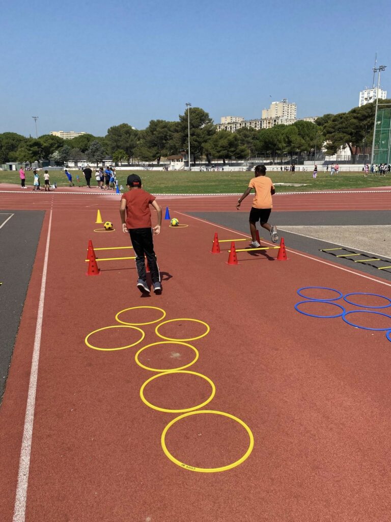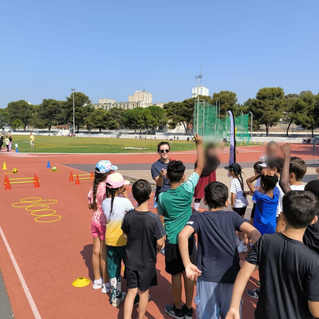 Le matin, en collaboration avec l’Athlé Nîmes 30, une matinée 100 % athlétisme a été organisée autour des épreuves phares : sprint, relais, saut, lancer… Les enfants ont aussi pu tester leurs connaissances grâce à un quiz sur les Jeux Olympiques et Paralympiques, mobilisant à la fois les jambes, les bras et la tête ! Cette rencontre venait clôturer les cycles Découvertes de l’année scolaire.